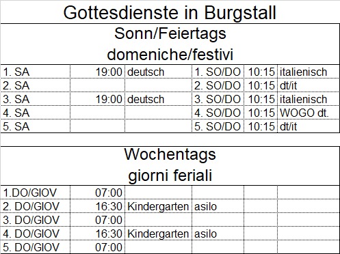 Künftig werden die Gottesdienste wie folgt stattfinden: